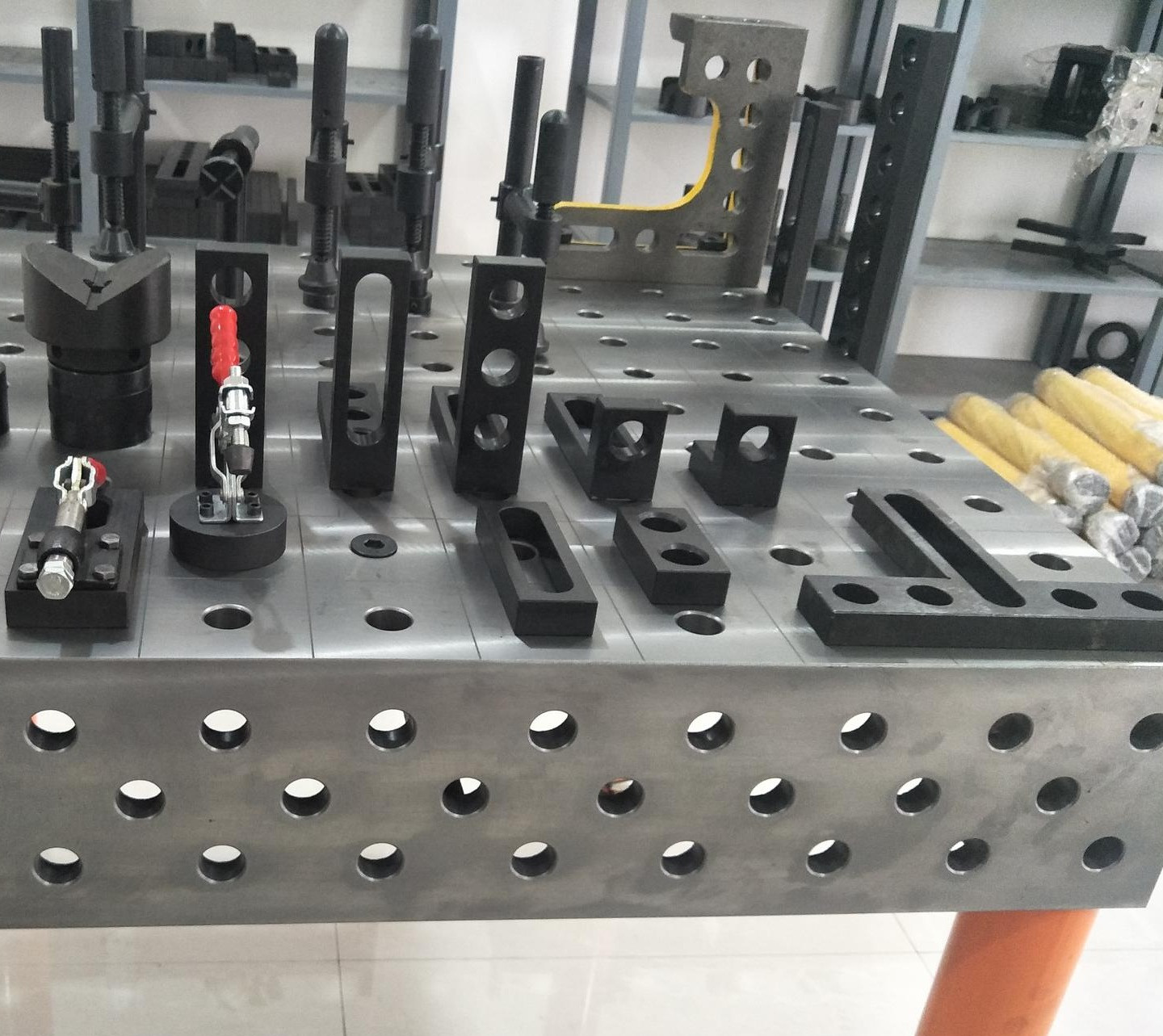 4、 重復(fù)性:三維柔性組合焊接工作臺(tái)的臺(tái)面有鑄鐵/鋼結(jié)構(gòu)件/加工件/模塊化組件組合而成,其性能非常穩(wěn)定,如使用不當(dāng)造成部件損壞時(shí),也不用報(bào)廢整張臺(tái),只要非常少的成本就可以 換單個(gè)部件。焊接平臺(tái)經(jīng)過(guò)加工處理,在焊接過(guò)程中,僅需低廉的防飛濺液即可免除工作臺(tái)表面的焊接飛濺。