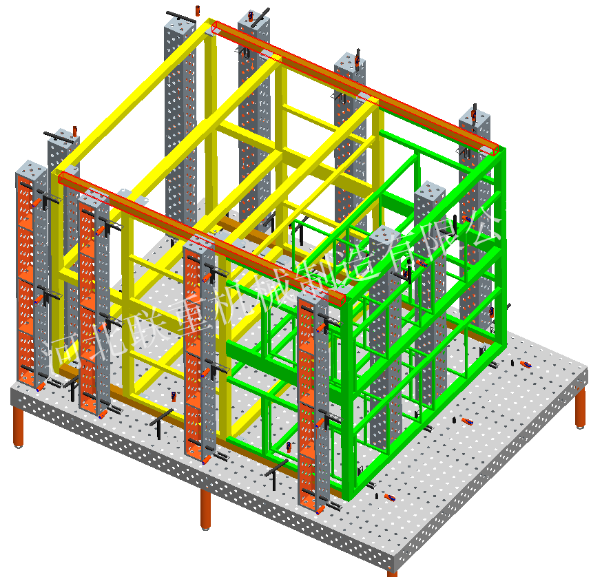 2、柔性化:柔性三維組合焊接工裝平臺(tái)的承載能力高,鋼性穩(wěn)定,它的五個(gè)面均加工有規(guī)則的孔,并刻有網(wǎng)線。焊接平臺(tái)可方便地延伸和擴(kuò)展,組合。經(jīng)擴(kuò)展的標(biāo)準(zhǔn)臺(tái)面可模塊化的定位和夾緊直接連接在一起。在安裝、調(diào)整和定位工件過(guò)程將柔性三維組合焊接工裝系統(tǒng)的通用功能展示的,尤其在了大型工件方面的應(yīng)用上。拼裝方式多樣,用戶只要充分發(fā)揮想象力,幾乎可達(dá)到任何夾具同樣的定位和夾緊功能。拼裝,裝拆方便;工作臺(tái)面可以根據(jù)工件形狀、大小進(jìn)行拼裝組合。臺(tái)面上的刻度和模塊尺寸的設(shè)計(jì),使操作工人不用量具就可以根據(jù)工件尺寸搭出所需要的工裝。